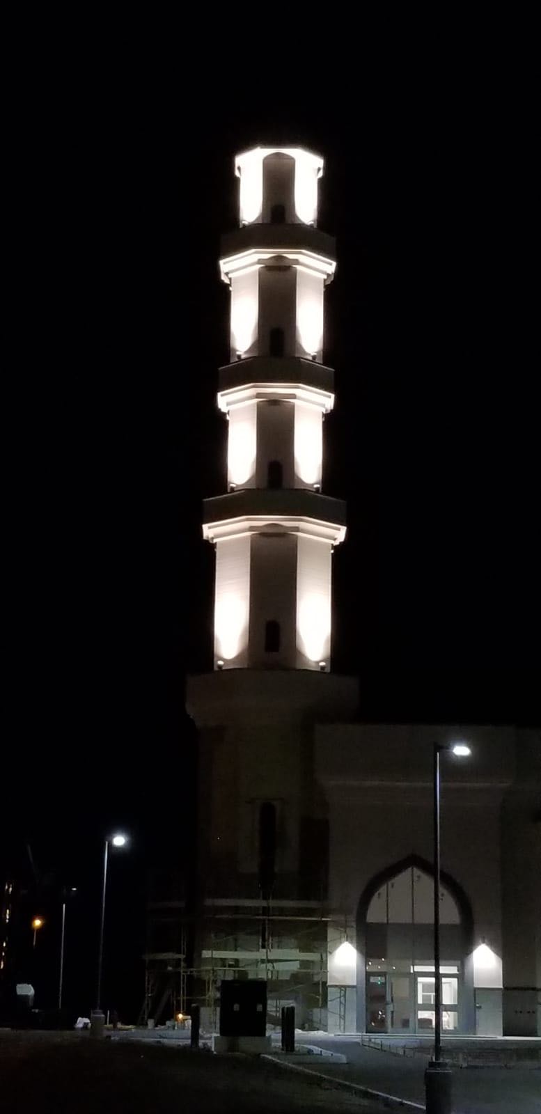 Ground breaking ceremony was held on the 5 October 2013 which was attended by the Ameer Jamaat Canada Malik Lal Khan Sahib as well as many Dignitaries from municipal, provincial and federal level of government. The $6 million project was completed by the grace of Allah in 2016.The 25,000-square-foot mosque was built across from the Greenbryre Golf Course, just outside city limits in Corman Park near Highway 16. Topped with a 100-foot minaret, it features classrooms, a sports facility and separate prayer and event halls for men and women. The Mosque was inaugurated by his Holiness Hadhrat Mirza Masroor Ahmad, the 5th Khalifa of the Ahmadiyya Muslim Community on his 2016 tour to Canada.
